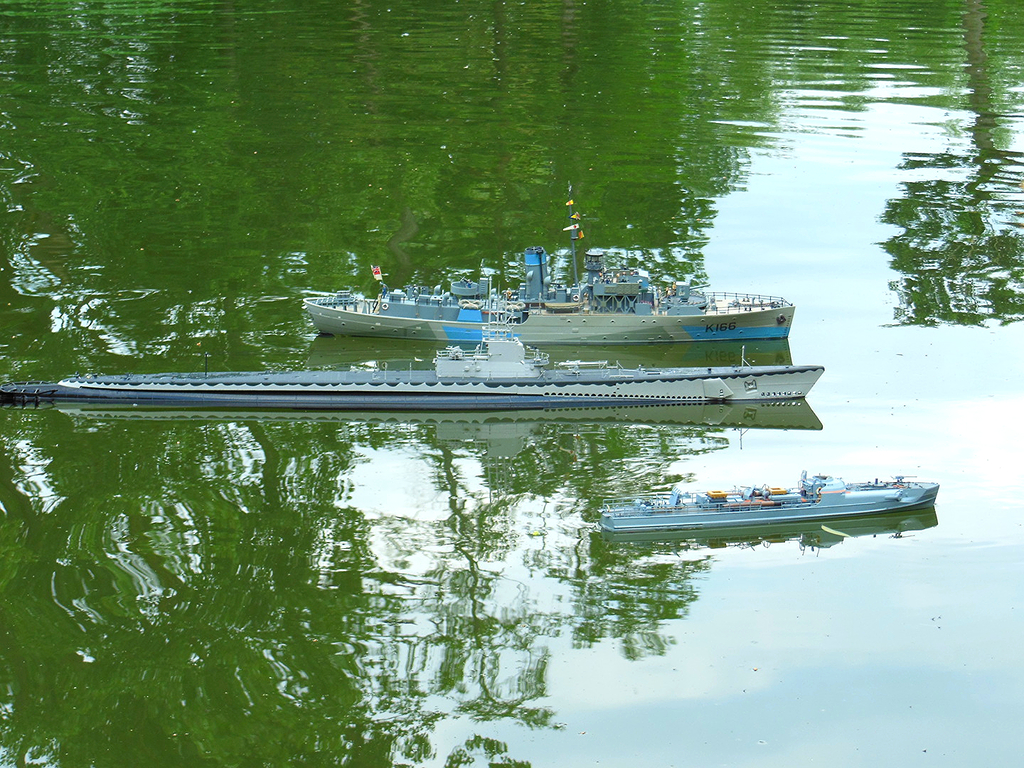 Graue Flotte im Einsatz auf dem Graf Luckner Weiher